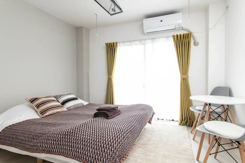 ダブルベッド・シングルベッド・アイロン・エアコン・シーツ類・テレビ・ハンガー・必需品・暖房・遮光カーテン